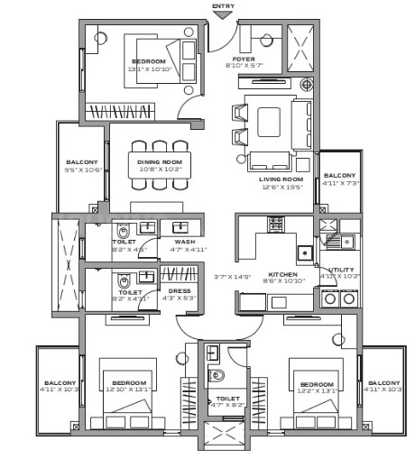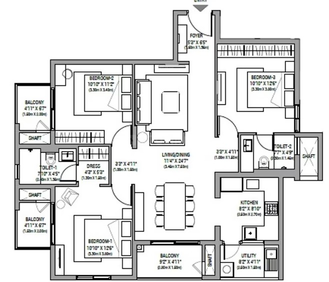 vitrified tiles for all Bedrooms / Kitchen / Living / Dining / Foyer
