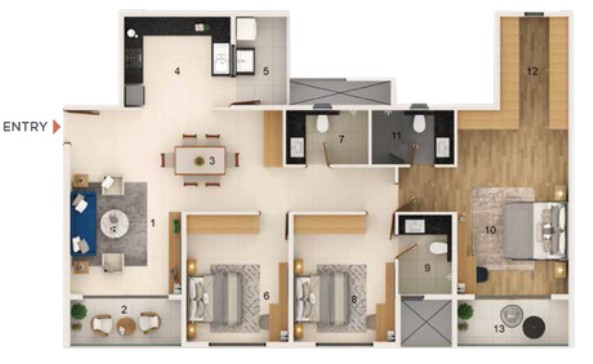»Provision for ceiling fan points in living/dining and all bedrooms