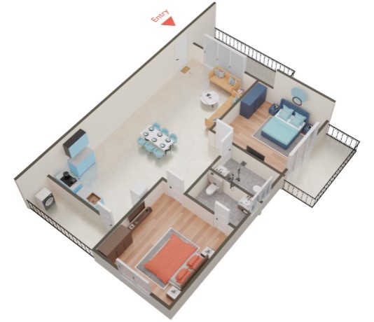 24" x 24" Vitrified tiles flooring for living, dining, kitchen and bedrooms. Ceramic tiles for balconies and kitchen. Anti-skid tiles in toilets of a minimum size of 12"x 12".