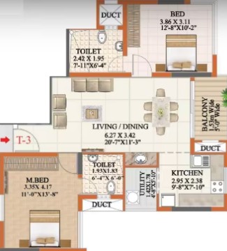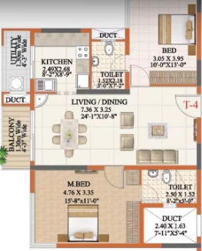 Vitrified Double Charged (Nano Technology) Tile of 800mmx800mm in living/dining room and 600mmx600mm in Bedroom, Wooden flooring for Master bedroom.