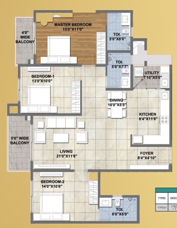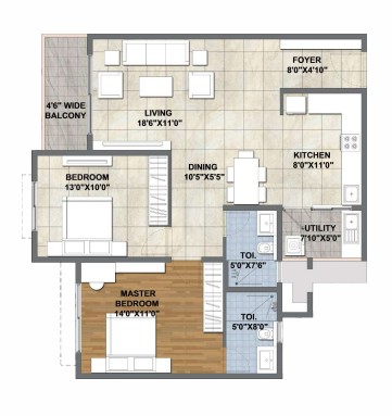 Unit sizes of the Ajmera Marina ranges from 1200 - 1600 Sq.Ft .