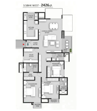 Unit sizes of the Ankuraa Pristine Park ranges from 1288 - 2439 Sq.Ft .