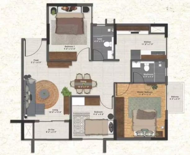(Only point is provided, no fixture is included). Provision of exhaust fan in Toilets & Kitchen utility. Telephone point in Living and Master bedroom T.V point in Living and Master bedroom