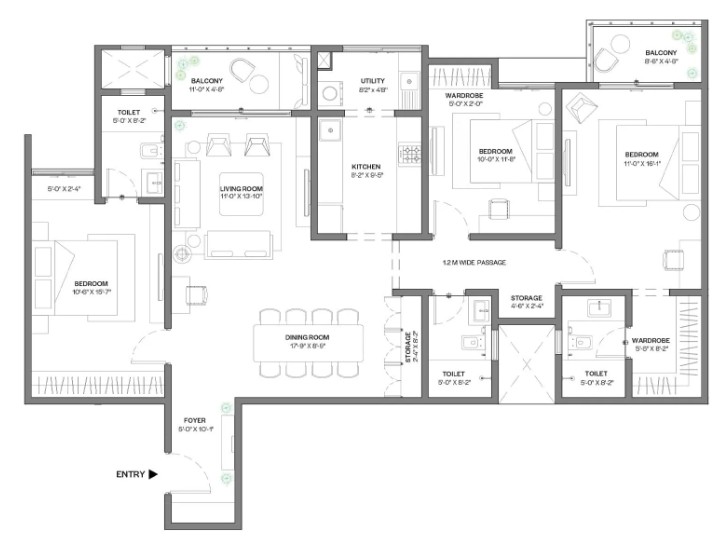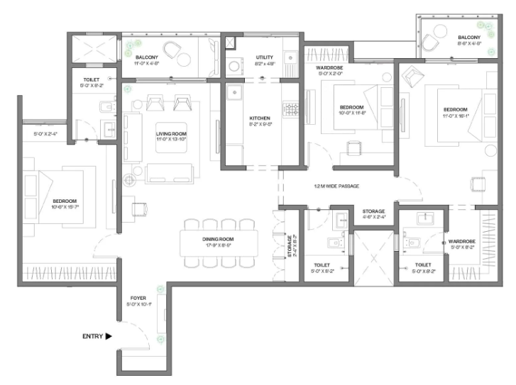 All the door frames with yellow cedar wood & Shutters will be Tubular Core BS Veneer flush door for main door and Tubular Core panel skin flush door for other doors.