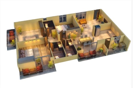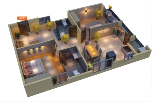 Vitrified tiles in living, dining, kitchen and bedrooms, Anti-skid tiles in toilets, balconies and wash area, Ceramic tiles in bathroom up to door level, Staircase and corridors with granite finish.