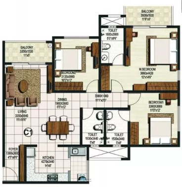 3-Bedroom Apartment + 3-Toilets: 3kW