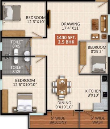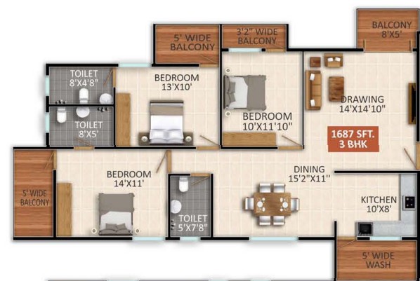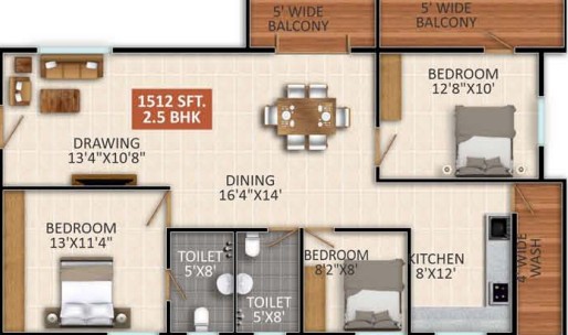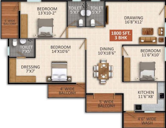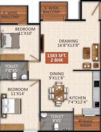 Provision for Washing Machine & Wet Area for Washing Utensils etc.