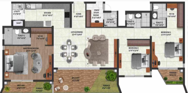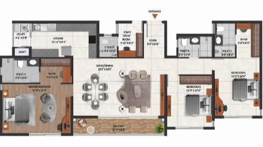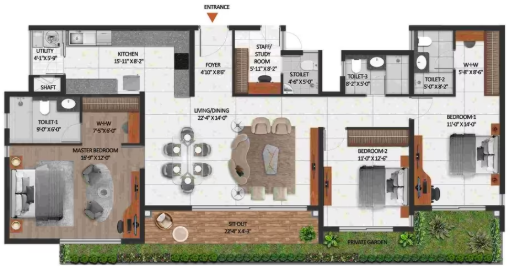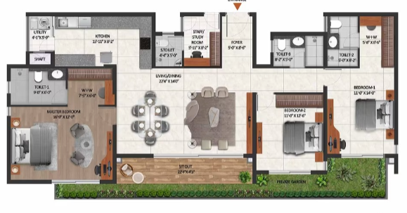 The residential apartments come with unit sizes ranging from 2349 sq ft to 2499 sq ft, which provide more space to live in a comfortable and convenient way. Every unit is constructed with 100% Vaastu compliance.