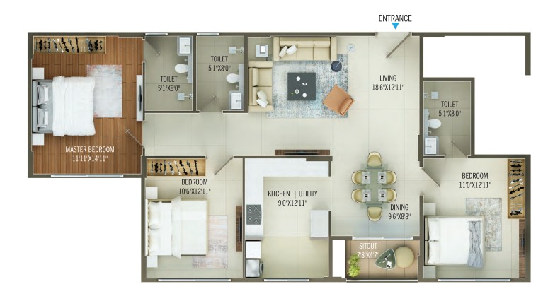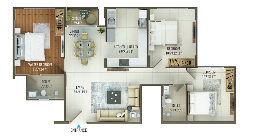 Concorde Mayfair is a gen-next project developed by the famous Concorde Group. Here they are going to stun us with these towering high-rise apartments for sale in Yelahanka. Spread across a site of 3.17 acres, there are several high-rise towers planned in this township. In total, there are 217 apartments for sale, and they are meticulously crafted as 2 & 3 BHK units with a unit size ranging between 1171 - 1667 Sq.Ft. These apartments are designed with futuristic floor plans and designs that make them stand out like a crown jewel. Equipped with cutting-edge amenities, these high-rise apartments are a symbol of fine living.