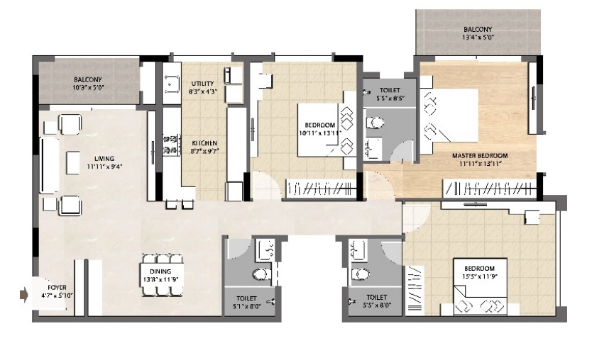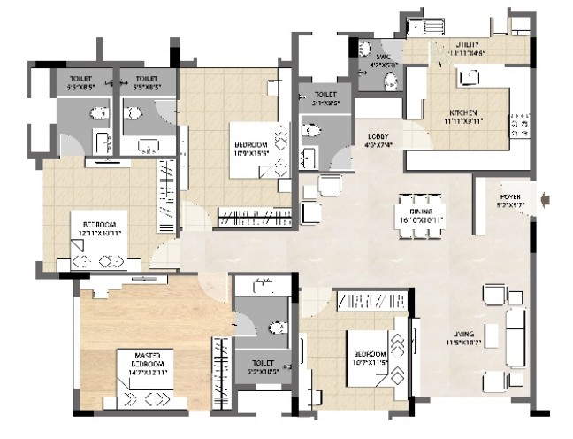 DNR Spring Leaf is a breath of fresh air! A well-planned gated community that offers high-rise apartments in Koramangala. Promoted by the well-known DNR Corporation this elite project spans a site area of 1 Acre and holds 59 apartment units. Here you will come across a wide variety of flats with 2.5, 3 & 4 BHK configurations. Each unit in this complex is stunningly planned with opulent carpet areas extending 1230 - 2357 Sq.Ft. A walking track, lounge, swimming pool, kids' play area, and gym are some of the modern amenities offered in this gated community.