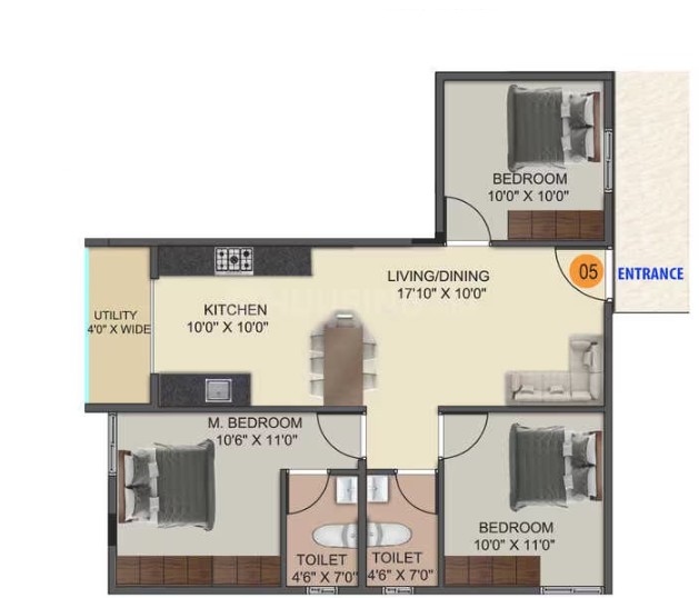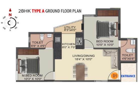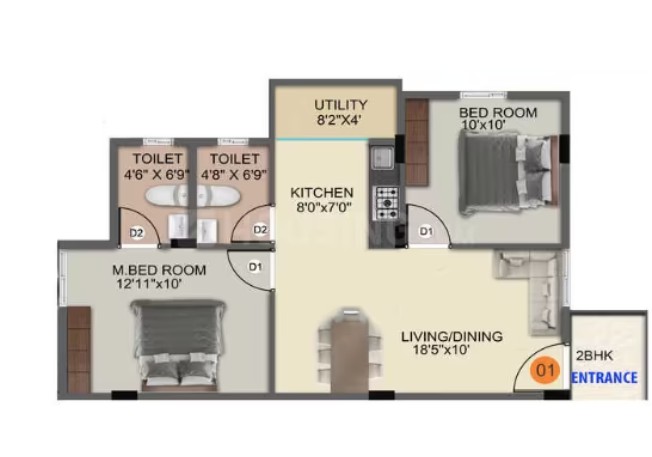 Granite platform: Pre-polished granite slab with profiled edge will be provided along with SS sink with drain board and a single bowl