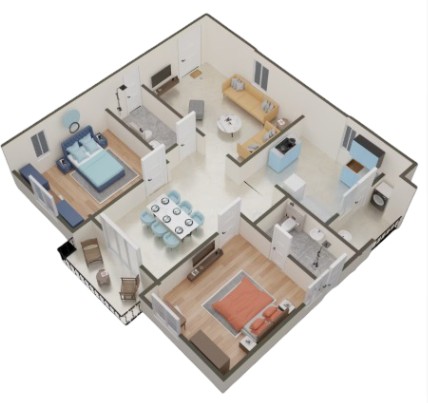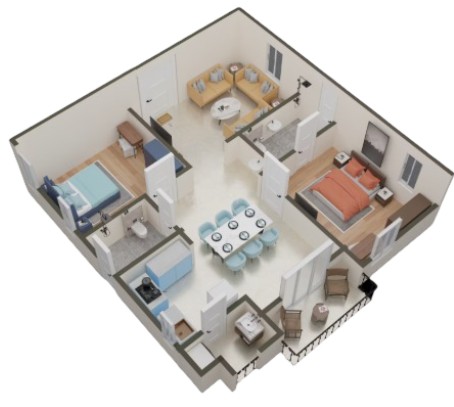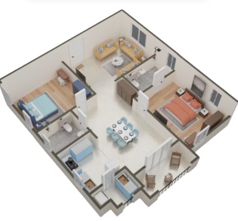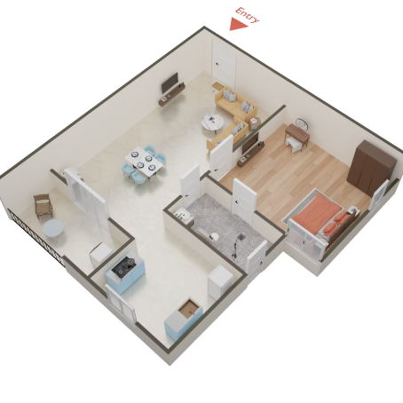 5.Plug points for television in Living and Master bedroom. In 1BHK plug points for TV in living only.