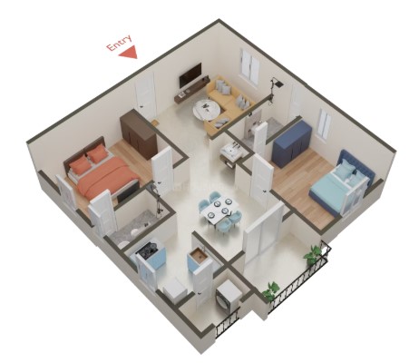 Main door:Molded Acacia wood (Engineered Wood) door frame and both side teak veneer designed flush shutter with melamine polish and S.S. hardware of reputed make.