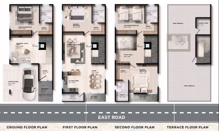 Dwara Orville is carved out by Dwara Developers, and there they promise you a luxurious lifestyle amidst a modern environment. These are contemporary-styled individual houses for sale in Doddakammanahalli, which is a nice mid-segment southern suburb of Bangalore city. This villa community spans 1.17 acres and offers 28 units. These individual houses are all configured as lavish 4 BHK units with a unit size extending 2800 Sq.Ft. These homes are perfect for those in search of spacious homes, and modern dwelling spaces. Each villa comes with double car parks, balconies, power backup, and even CCTV cameras.