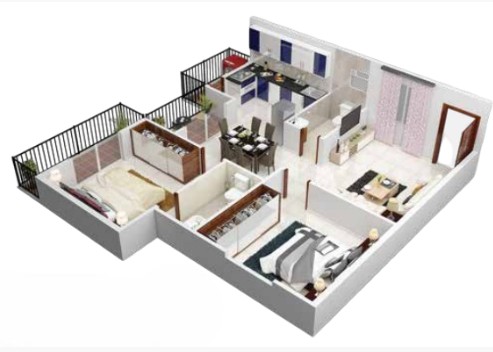 Vitrified tiles in living, dining, kitchen and all bedrooms along with anti-skid tiles in balcony and utility.