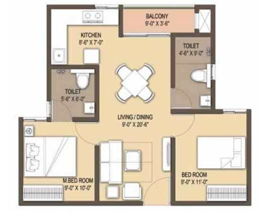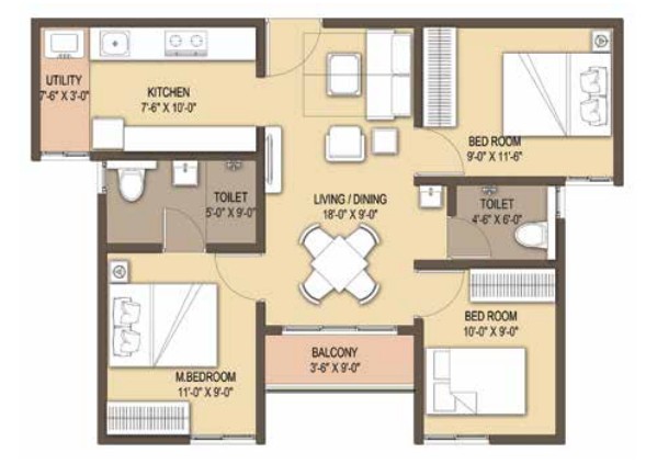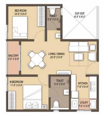 • Vitrified flooring for living, dining, kitchen & Bedrooms