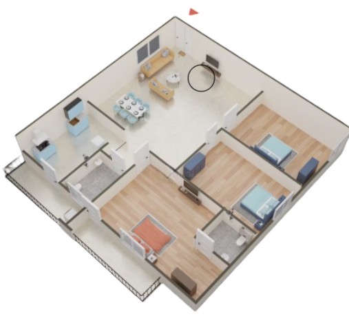 Backup power of 0.3 KVA for 2 BHK, 0.4 KVA for 2 BHK + Study & 0.6 KVA for 3 BHK.
