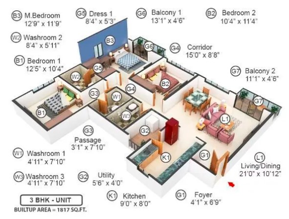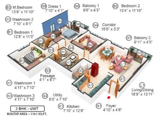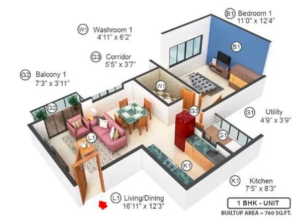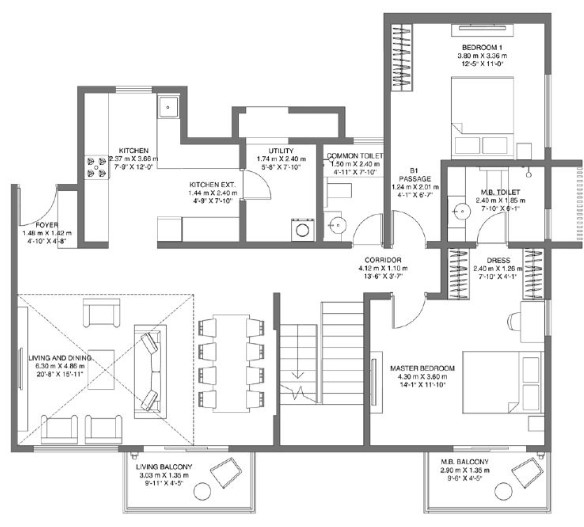 Living/Dining/Foyer - Vitrified Tiles (800 x 800 mm)