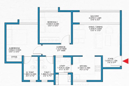 For 2 and 3 BHK: platform and single bowl sink will be provided in utility (no platform, no sink and no dado will be provided in the kitchen)