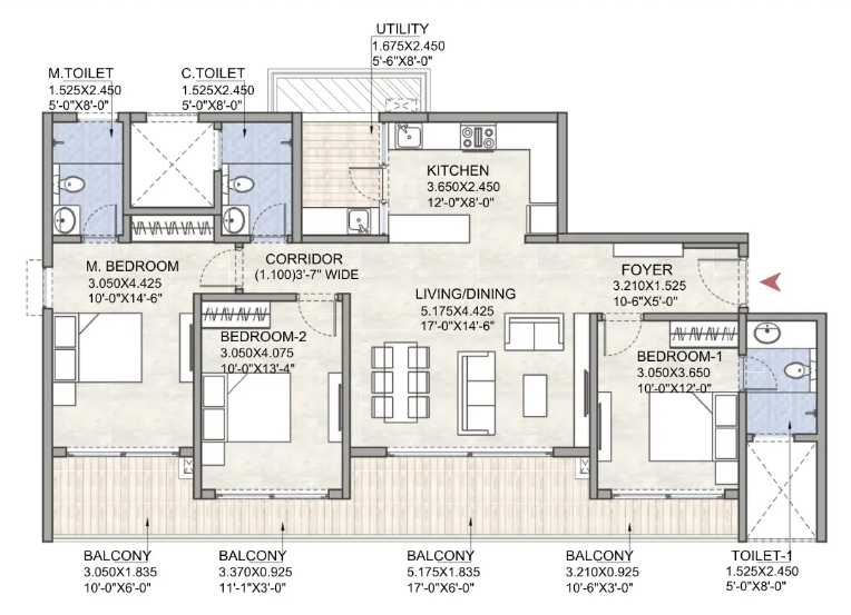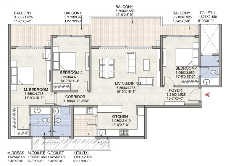 Unit sizes of the Godrej Woods ranges from 1193 - 2191 Sq.Ft .