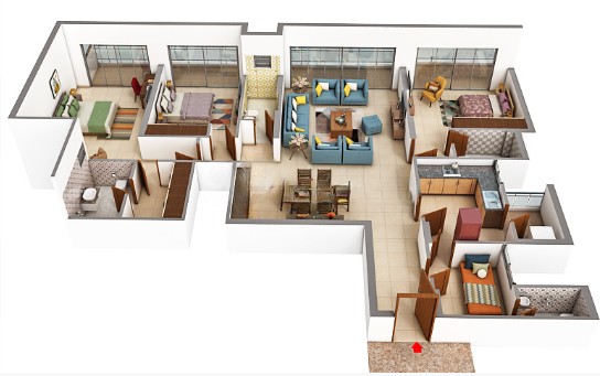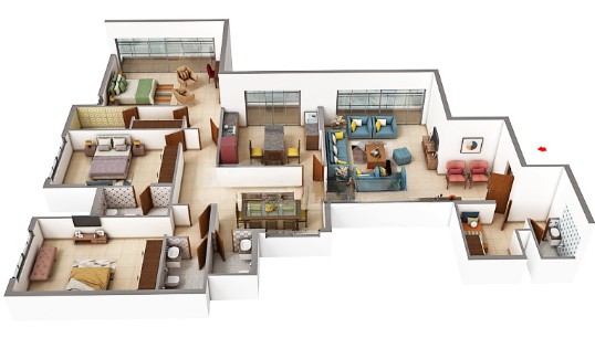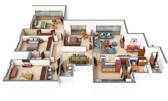 • Bedrooms: Wood laminate flooring or vitrified tiles.