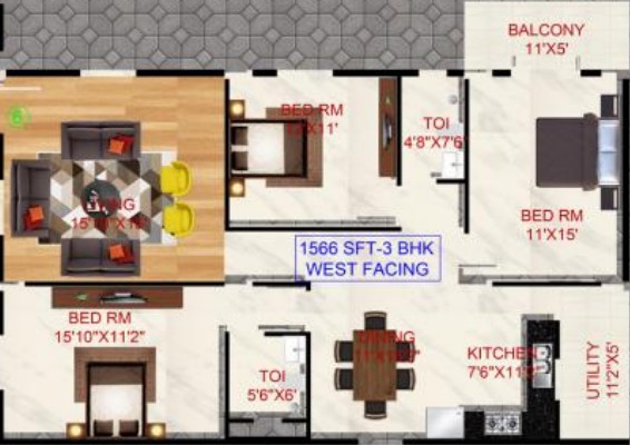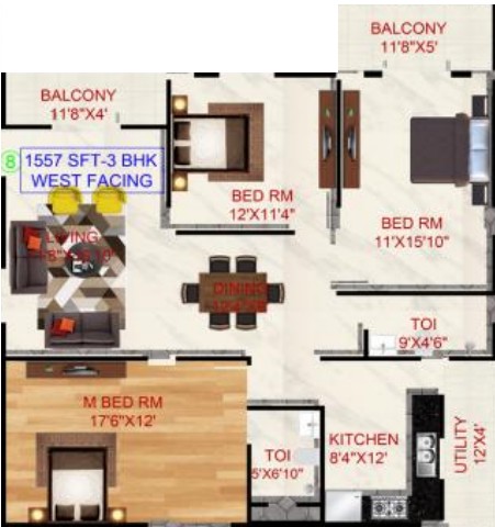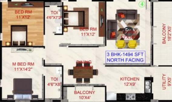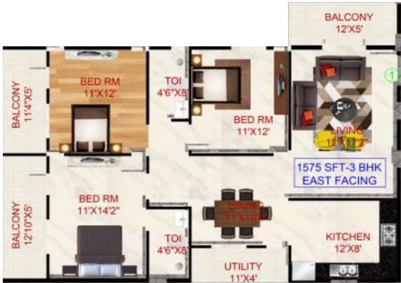 Happy Homes Varenya is a vibrant property that offers flats in Sarjapur. One of Bengaluru's top trending residential and commercial hot spots. Designed and executed by Trishul Builders and Promoters this project offers both 2 & 3 BHK flats. The unit size of these flats starts at 1107 Sq.Ft and go all the way up to 1575 Sq.Ft. So they are all spacious and stylishly crafted with urban designs. Totally this mid-rise apartment holds 56 apartment units and each home has its very own balcony. Further, this community comes with a kid's play area, gym, a power backup facility, and many more modern amenities.