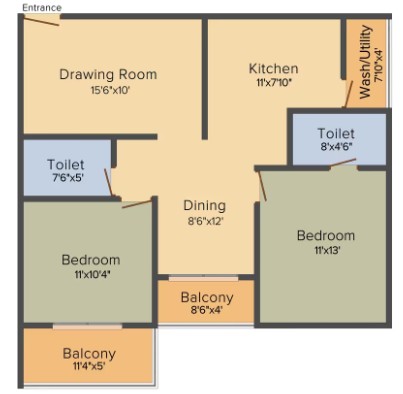 Living and Dining Room - Vitrified tiles for entire flooring & balconies.