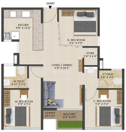 On this nearly one-acre property in the heart of Harlur, 95 units are constructed with the wise use of space and being flexible enough to adapt to your needs. Each home in ICONEST 5 is designed to ensure that you experience life to the fullest. You can discover the wide rooms if you're seeking for a 3 BHK flat which is for sale in the Bengaluru city. This is constructed by the developer of ICON Homz. The units found with the home sizes vary from 877 sq.ft to 894 sq.ft. Experience every inch of space here to the core.