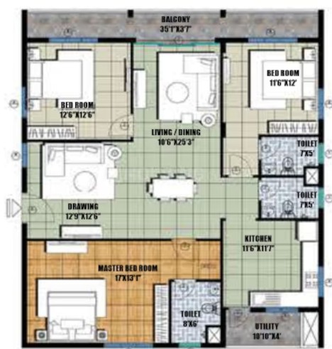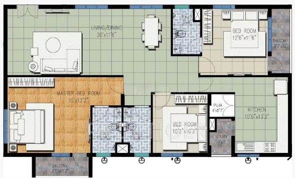 Others: International style modular kitchen, granite counter top, stainless steel sink and CP fittings