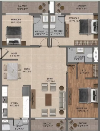 The residential apartments are designed with unit sizes ranging from 1753 sq ft to 2552 sq ft, which is a massive space to accommodate privacy and comfort in one place. It can even customise the buyer's choice with personal things. Clubhouses will develop the relationship between residents. The lawn area can be used for conducting events and resting spots.