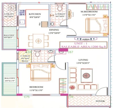Unit sizes of the Iresh Advaita ranges from 1200 - 1520 Sq.Ft .