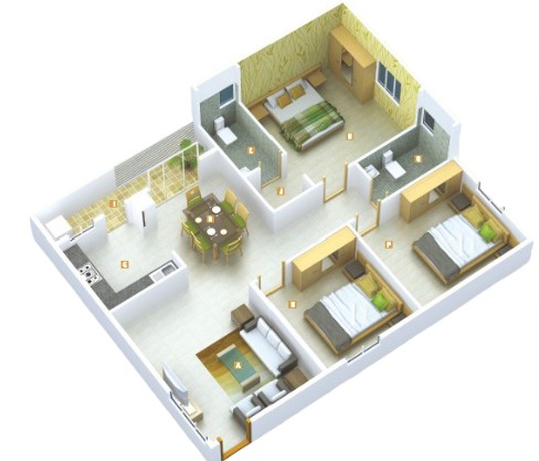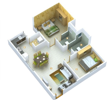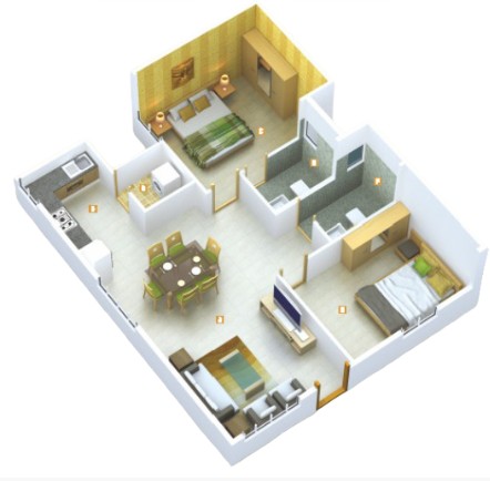 2 x 2 Vitrified flooring for living, dining, bedrooms & kitchen.