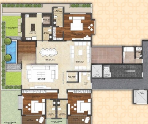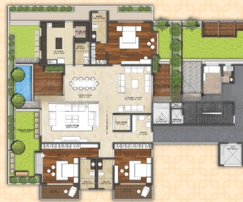 Bedrooms – Hardwood frame with flush shutters finished with teak wood veneer on both side