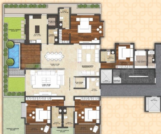 Main door – Teak wood frame with flush shutters finished with teak wood veneer on both side