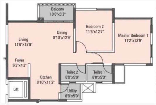 Unit sizes of the Kumar Prince Ville ranges from 1239 - 1495 Sq.Ft .