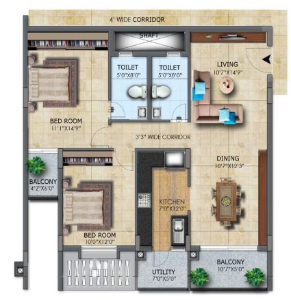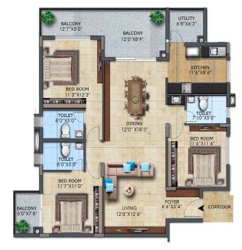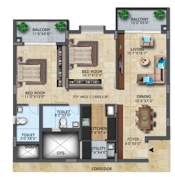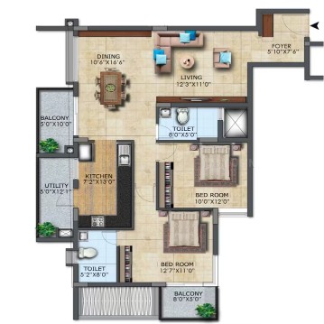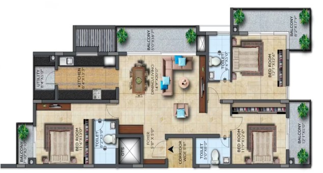 Drawing/Dinning/Living: 2' x 2' or 2'6'' x 2'6'' vitrified tiles with skirting. Bedroom & Kitchen: All bedroom and kitchen with 2' x 2' or 2'6'' x 2'6'' vitrified tiles with skirting. Internal/External stair case/Lobbies: Granite stone as per the architectural design. Toilets: Best quality acid resistant anti-skid ceramic tiles. Lift Cladding: Granite as per the architectural design