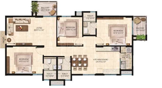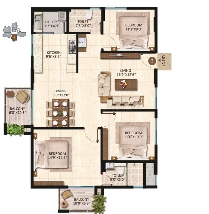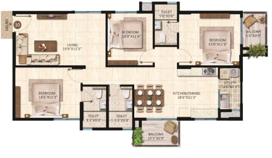 Luxurious triple bedrooms are available for sales in the city of Bengaluru. The fresh air and the proper ventilation is the main feature of the apartment. Maangalya Developers has constructed the flat known to be Maangalya Park Avenue in the locality of JP Nagar. Two acres of the land is the available space of the building. There are 144 units with the sizes of 1542 sq.ft to 1789 sq.ft. Live close to nature in this apartment where there is lush greenery with the landscape of surroundings.