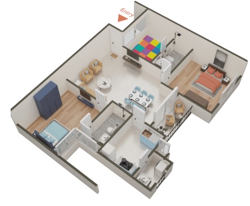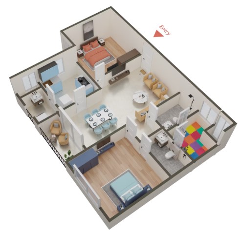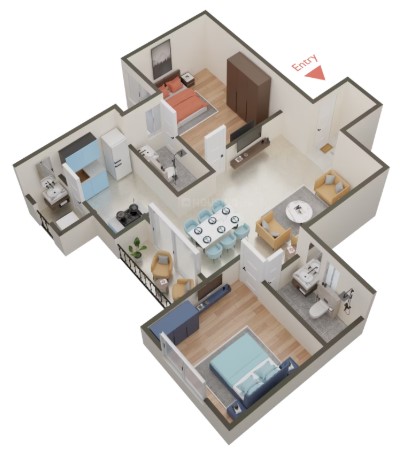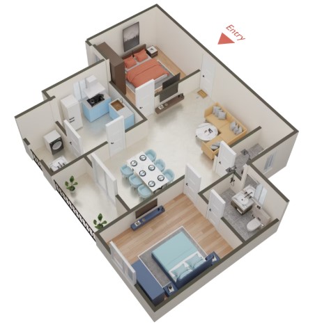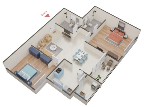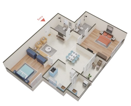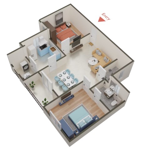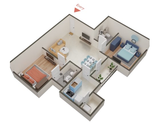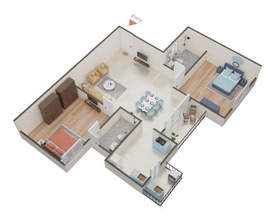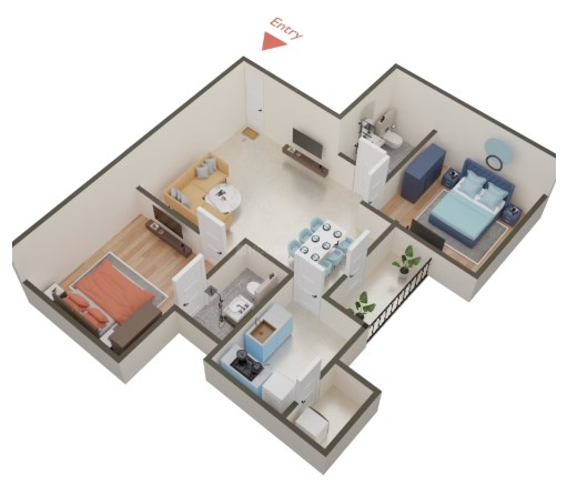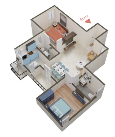 - Double charged vitrified tile flooring in Living, Dining Bedrooms and Kitchen