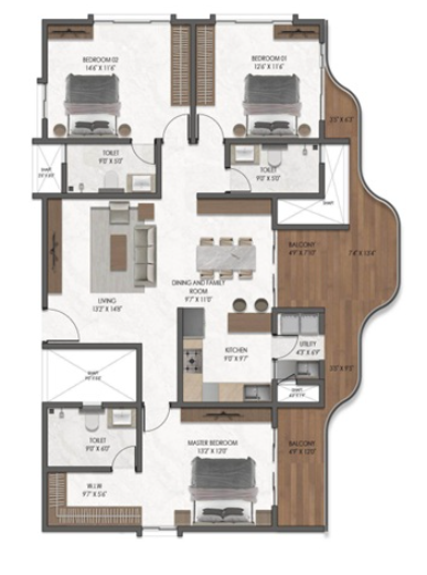 Unit sizes of the Mana Verdant Terraces ranges from 1,910 - 2,700 Sq.Ft .