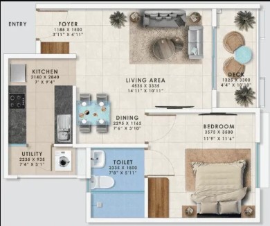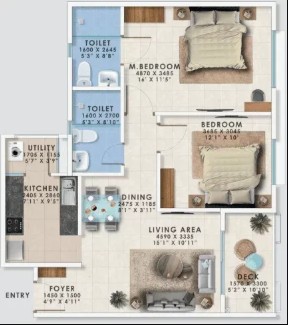 Unit sizes of the Manasum Riva ranges from 796 - 1187 Sq.Ft .