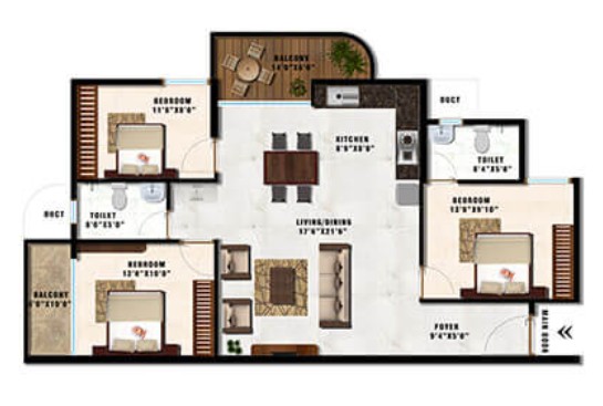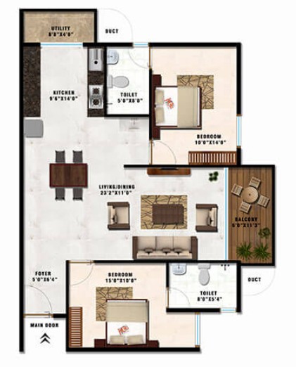 Each apartment building at Mangalam Ecstasy has a courtyard, providing the necessary aesthetic appeal and the perfect visual delight. The property’s best feature is that each tower is shaped like a petal, so that each flat is in a separate corner and is not directly in front of another flat. This ensures that each apartment receives the necessary light and is quite awesome. Mangalam Projects presents the flat as a true architecturally designed masterpiece. This is designed to cater to a high standard of living which has the rooms of double and triple bedrooms.