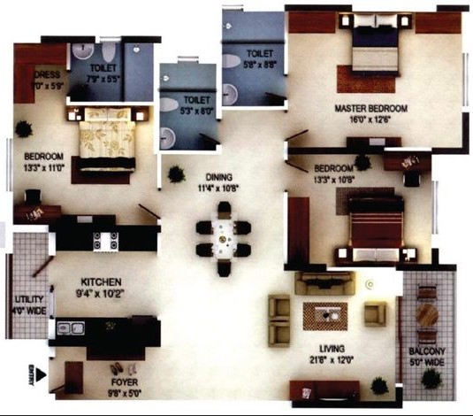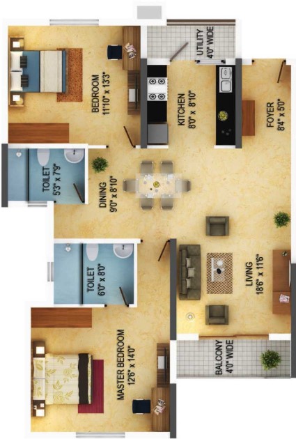 Electrical & Plumbing Points : Provision for electrical & plumbing points for modular / Island kitchen (granite platform with sink and drain board will be provided on request and at an extra cost).