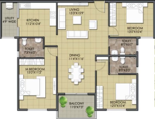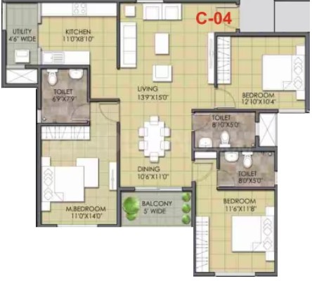 Provision for modular kitchen and granite platform. Glazed tiles dado and a stainless steel sink that offers a perfect ambience to dish out delicacies. Exhaust fan point as a perfect accompaniment for modern-day cooking.