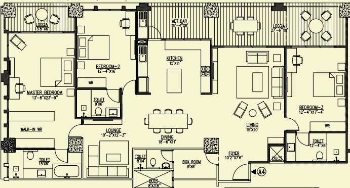RCC frame structure with masonry partitions. Height of each floor from slab to slab: 9'6" to 10'4". All concrete work in Ready-mix Concrete (RMC) of a minimum strength of M20, formed using film faced shuttering grade plywood.