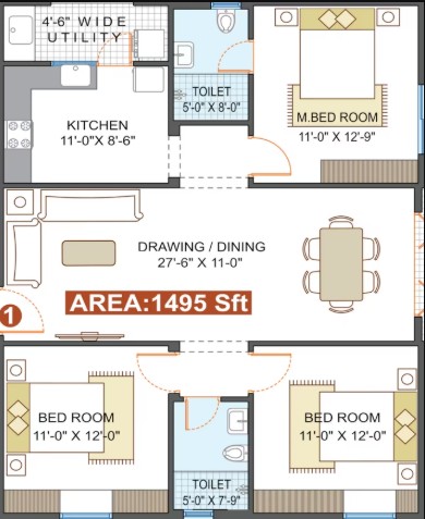 Balconies and Toilets: 12' X 12" Anti-skid ceramic tiles flooring