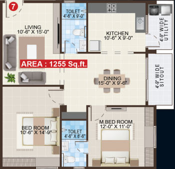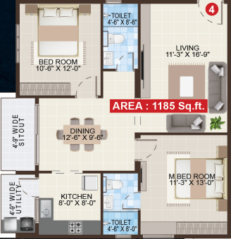 Unit sizes of the Mohan Tritone ranges from 1185 - 1670 Sq.Ft .