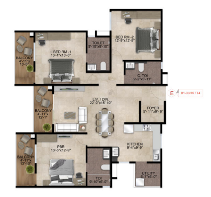 Unit sizes of the Nandi Meraki ranges from 715 - 1950 Sq.Ft .