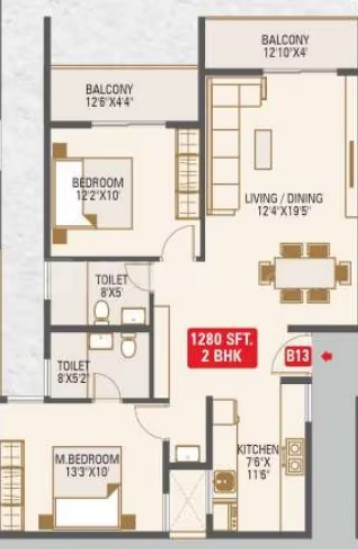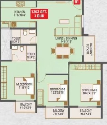 Vitrified tiles in hall, dining & other rooms and anti-skid tiles in toilets, utilities & balconies.