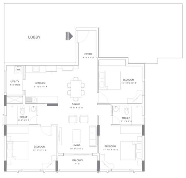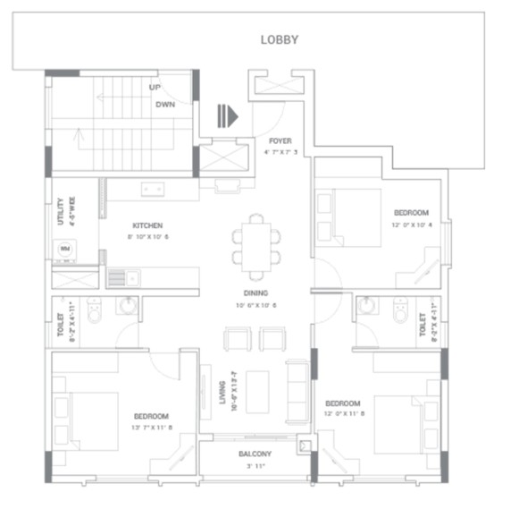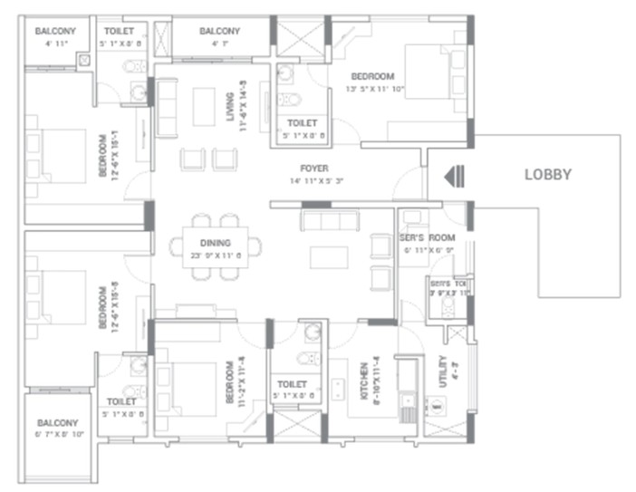 Granite/superior quality vitrified tile flooring for lift lobbies and corridors on all other floors