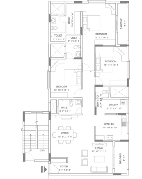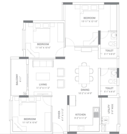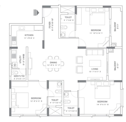 Superior quality vitrified tile flooring for living, dining, kitchen, and bedroom as per the architect's design